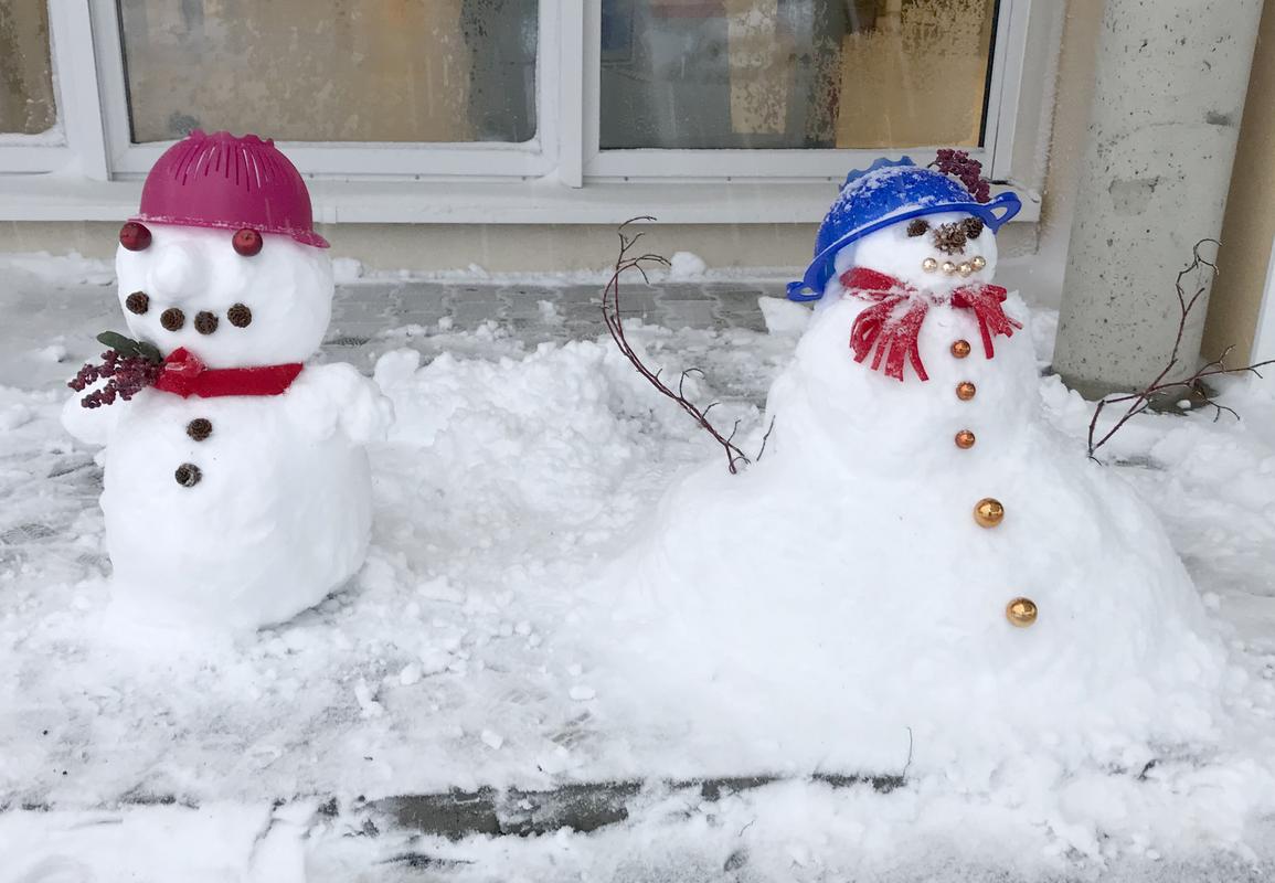 Gesagt, getan. Bei starken Schneefall, ohne Mütze und Handschuhe bauten wir sogar 2 Schneemänner.
